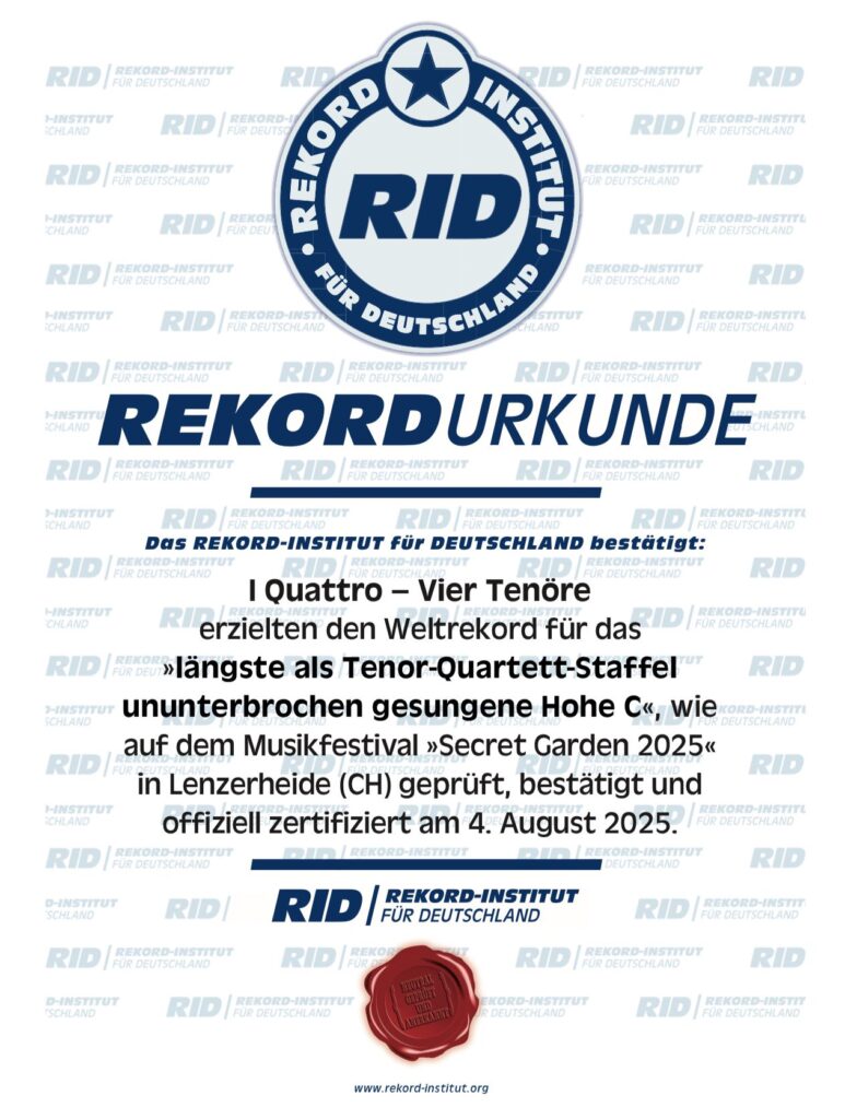 »Wir freuen uns sehr, dass die vom RID zertifizierte Bestleistung den Höhepunkt des Festivals markiert. Die Tenöre haben eine großartige Darbietung abgeliefert – wir gratulieren zum neuen Weltrekord!«