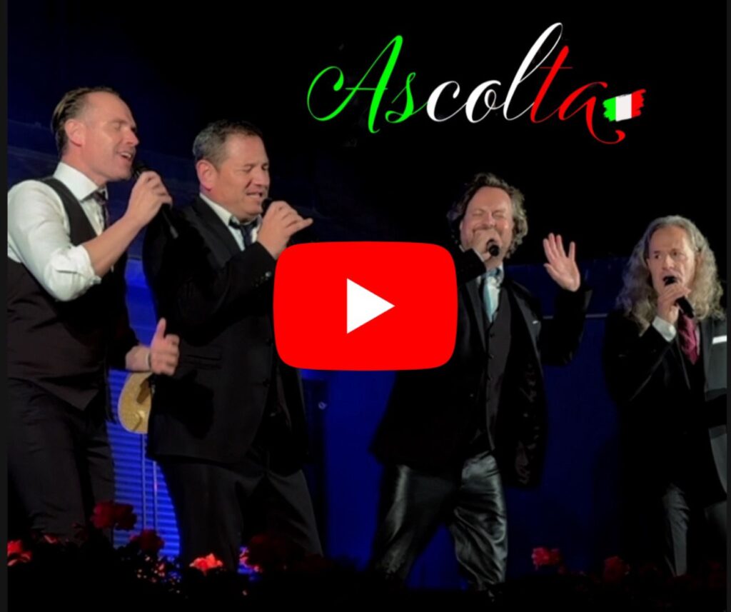 I QUATTRO nehmen uns nicht nur mit auf gefühlvolle Reise, sondern lassen uns die Harmonie ihrer Stimmen auch alle damit verbunden Emotionen intensiv spüren. Einschließlich dem Moment, wo man beginnt, die Welt um sich herum mit anderen Augen zu sehen…oder besser gesagt «ASCOLTA» zu hören. «Hörst du, das Meer singt für mich…». Besonders im Refrain entwickeln ihre kraftvoll- warmen Stimmen eine ganz besondere Magie.