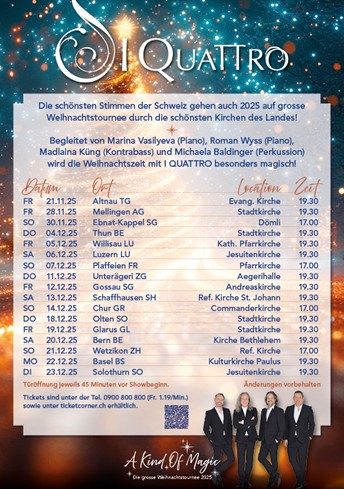 21.11.2025 | A Kind Of Magic - Weihnachtstournee 2025 Altnau TG · Evangelische Kirche · 19:30 |